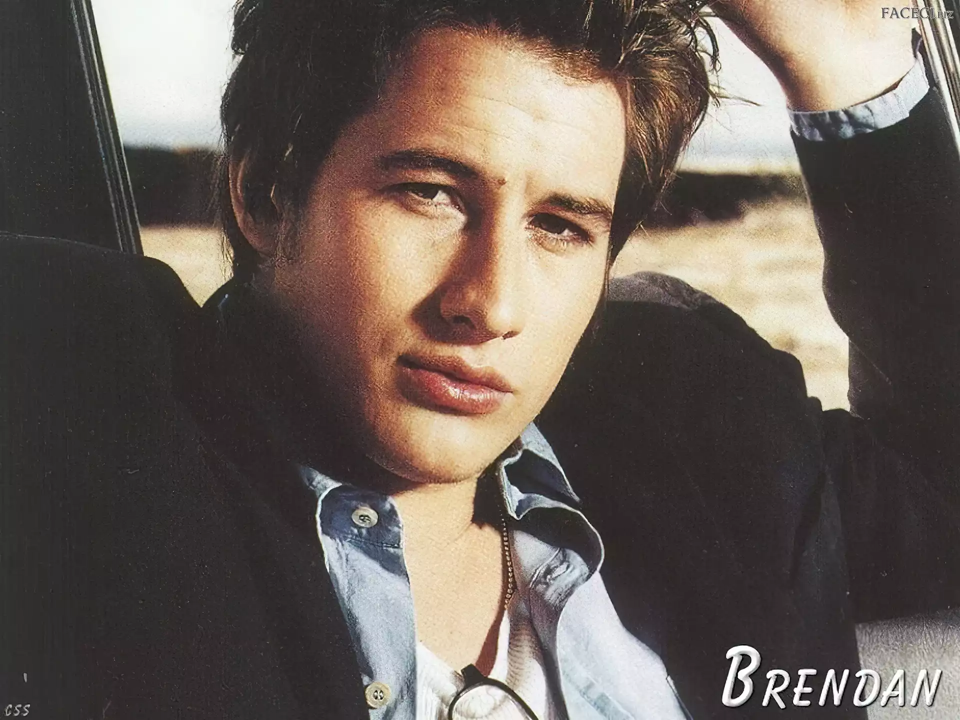 oczy, Brendan Fehr, brązowe włosy, Brendan Fehr, brązowe Brendan Fehr kurtka, Brendan Fehr, czarna sweter, Brendan Fehr, czarny włosy, Brendan Fehr, ciemne Brendan Fehr koszula, Brendan Fehr, niebieska koszula, Brendan Fehr, niebieska włosy, Brendan Fehr, jasne okulary, Brendan Fehr, pistolet włosy, Brendan Fehr, brązowe Shiri Appleby, Katherine Heigl, Jason Behr, Roswell, Brendan Fehr zdjęcia, Brendan Fehr, twarze